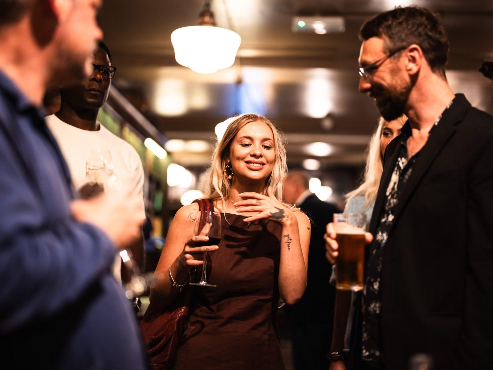 The Back Beach was already crowded by the time I found Hugh. The tide had pulled back to reveal between the moored boats and the sea wall a strip of sand, just wide enough for the stage the scaffolders had put together that morning. They were all now enjoying their modest payment in beer. Hugh stood outside The Ship with a pint in his hand, the other in the pocket of his oilskin jacket.